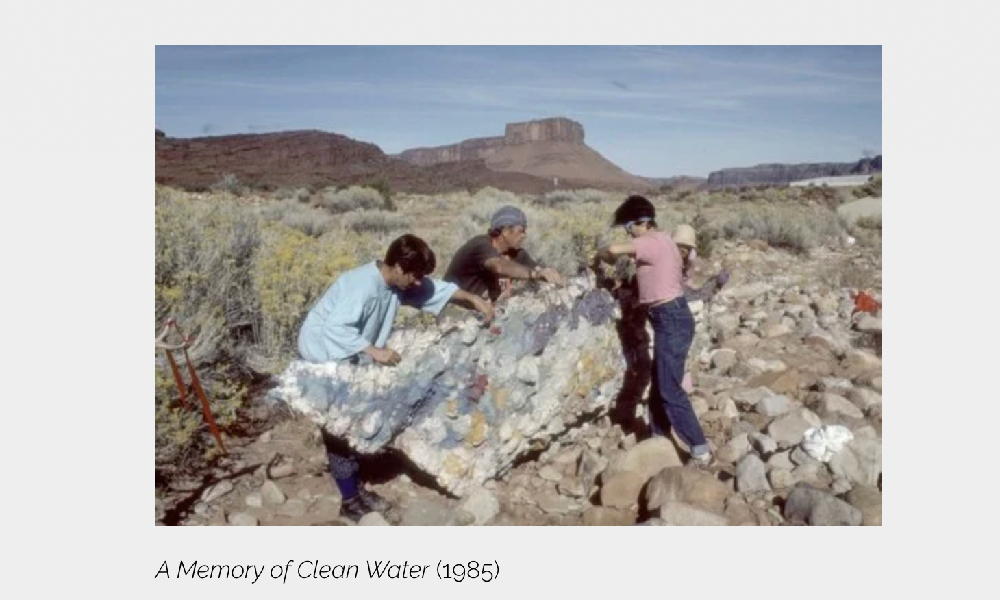 Odmah sam se sjetila rada američke umjetnice Betsy Damon iz 1985. “Sjećanje na čistu vodu”; naziv koji denotira lament nad distopijskom realnošću za koju polu-naivno a uglavnom samoobmanjujuće mislimo da je u nekoj dalekoj budućnosti ili samo na filmu.